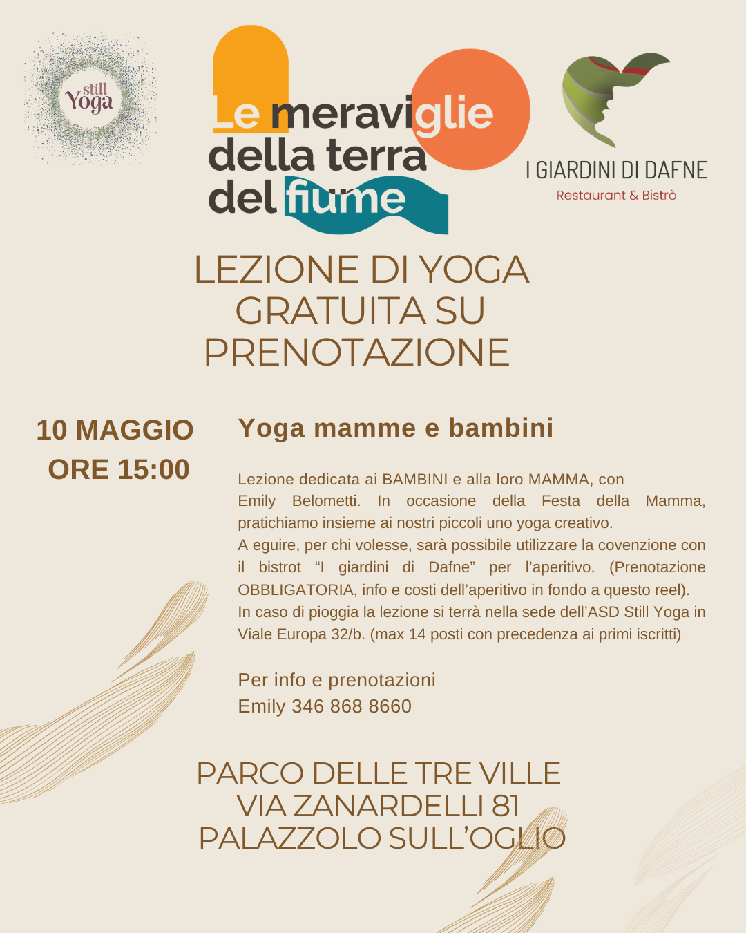 In caso di pioggia la lezione si terrà nella sede dell’ASD Still Yoga in Viale Europa 32/b. (max 15 posti, precedenza ai primi iscritti).